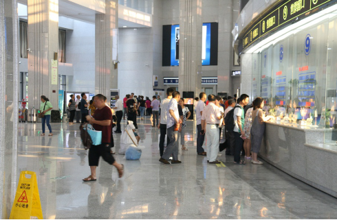 ▲ 图为旅客排队购票