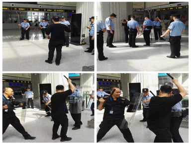 为进一步提升车站干部职工防恐反恐意识,提升车站与公安部门联动、协同作战能力,及时有效地处置突发暴恐事件,确保高山湾交通枢纽8月18日全面启用后各项工作能顺利开展。 2019年7月31日, 科顺公司与崇义派出所在高山湾交通枢纽汽车客运站内联合开展了反恐防暴演练。演练模拟一名身份不明的男子持凶器进入车站售票厅行凶,车站保安及工作人员联合派出所干警运用防暴叉、防暴棍等反恐防暴器械迅速将其制服。