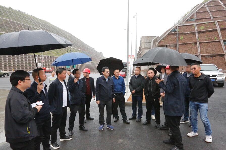 姜洪平董事长一行率先来到鹅西路。鹅西路全线已于今年2月7日顺利通车,项目现场正开展道路绿化收尾工作。姜洪平董事长表示,一是要抓紧完成道路两侧、导流岛、树木移栽等绿化任务,注意细节处理;二是尽快完成收费站管理用房、厕所调整方案,包括围墙、排水管、休息室、周边绿化等,送区领导审定后实施;三是协调交管部门落实交通管制方案,完成隧道内灯光调整、消防设施安装等后续工作。