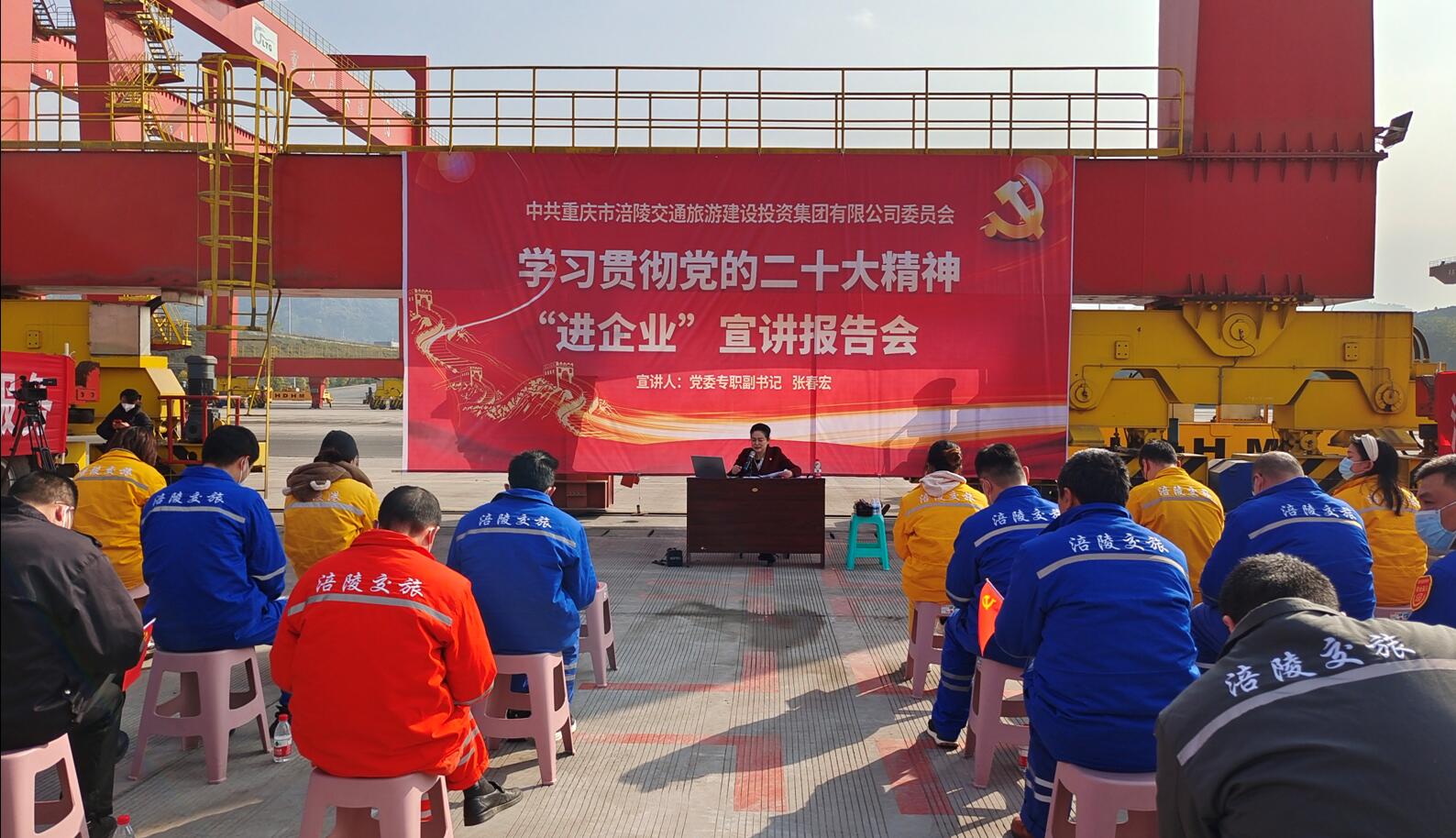 1月6日下午,涪陵交旅集团党委专职副书记张春宏同志来到龙头港作业现场开展学习贯彻党的二十大精神“进企业”宣讲。兴港公司、龙头港公司、中龙公司、海迅公司党员干部和员工代表参会。