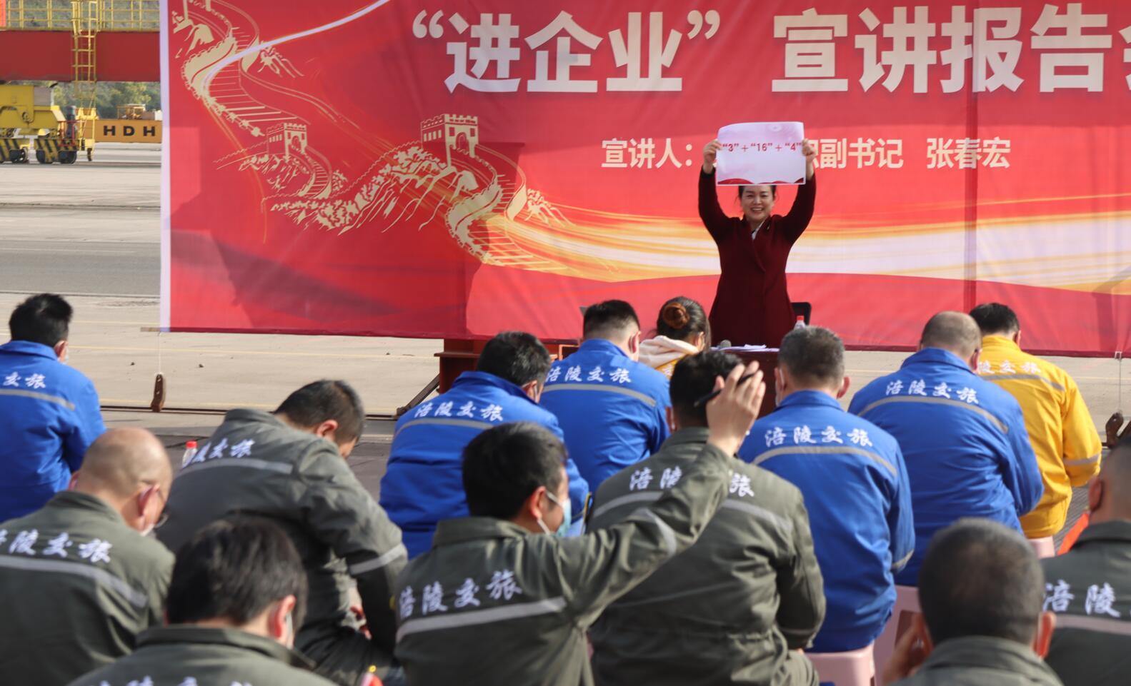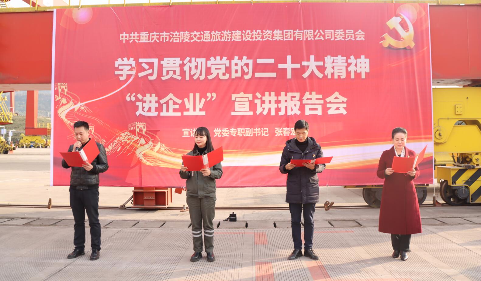 宣讲会最后,部分党员代表通过诗歌朗诵《党的二十大精神放光芒》表达对党的热爱、对祖国的礼赞。与会人员纷纷表示将以更饱满的热情、更充足的干劲学习宣传贯彻党的二十大精神,把党的二十大精神转化为干事创业的强大动力,敢闯敢干,唯实争先,始终永葆“闯”的精神、“创”的劲头、“干”的作风,奋力打造内河一流铁公水联运枢纽港,助推涪陵在追赶超越中不断开创发展新局面。