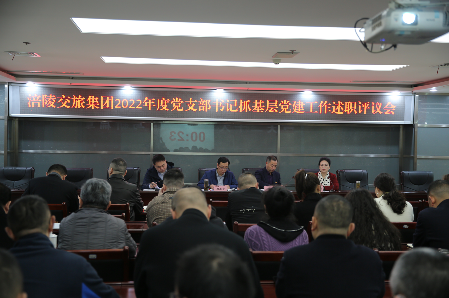 3月16日下午,涪陵交旅集团召开2022年度党支部书记抓基层党建述职评议会。会议由集团公司党委委员、专职副书记张春宏主持,集团公司在家党委委员、下属各子公司党支部支委和班子成员、集团公司“两代表一委员”以及党员和职工代表共计46人参加了会议。