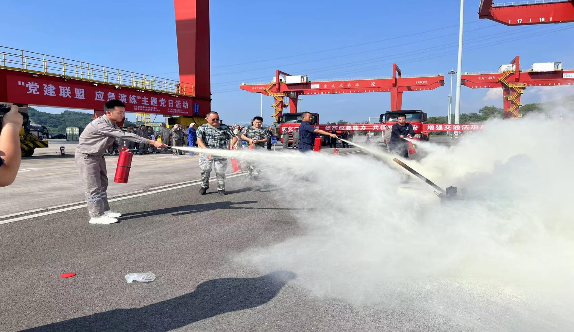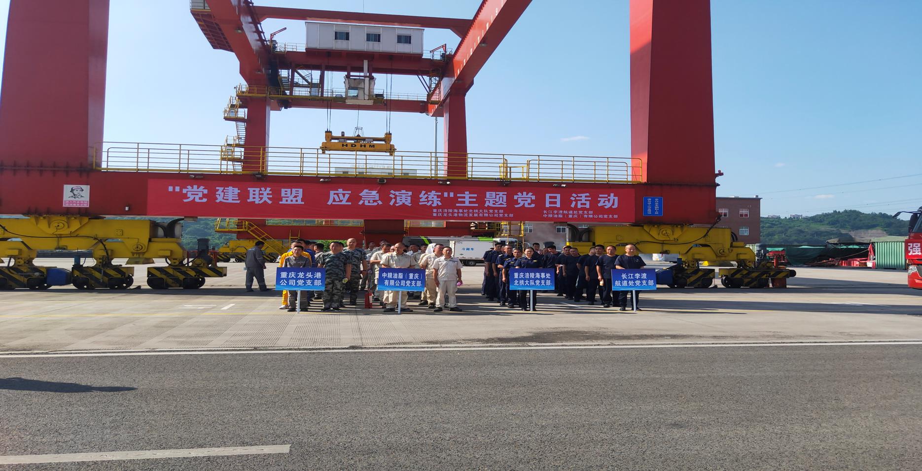 今年6月是我国第22个全国安全生产月,6月26日下午长江李渡航道处、涪陵海事处北拱执法大队、重庆龙头港物流发展有限公司、中粮油脂(重庆)有限公司4个单位党支部开展了以“党建联盟 应急演练”为主题的主题党日活动,切实做好港口码头防火安全工作,确保运营顺利进行,在突发火险灾情时能够做到反应迅速、分工明确、处置有序、及时扑救,努力使人员伤亡和财产损失减少到最低限度。此次演练成立了应急演练指挥部,龙头港公司党支部书记殷德东为总指挥,其余支部书记为协调员,4个党支部共60余名党员参训。
