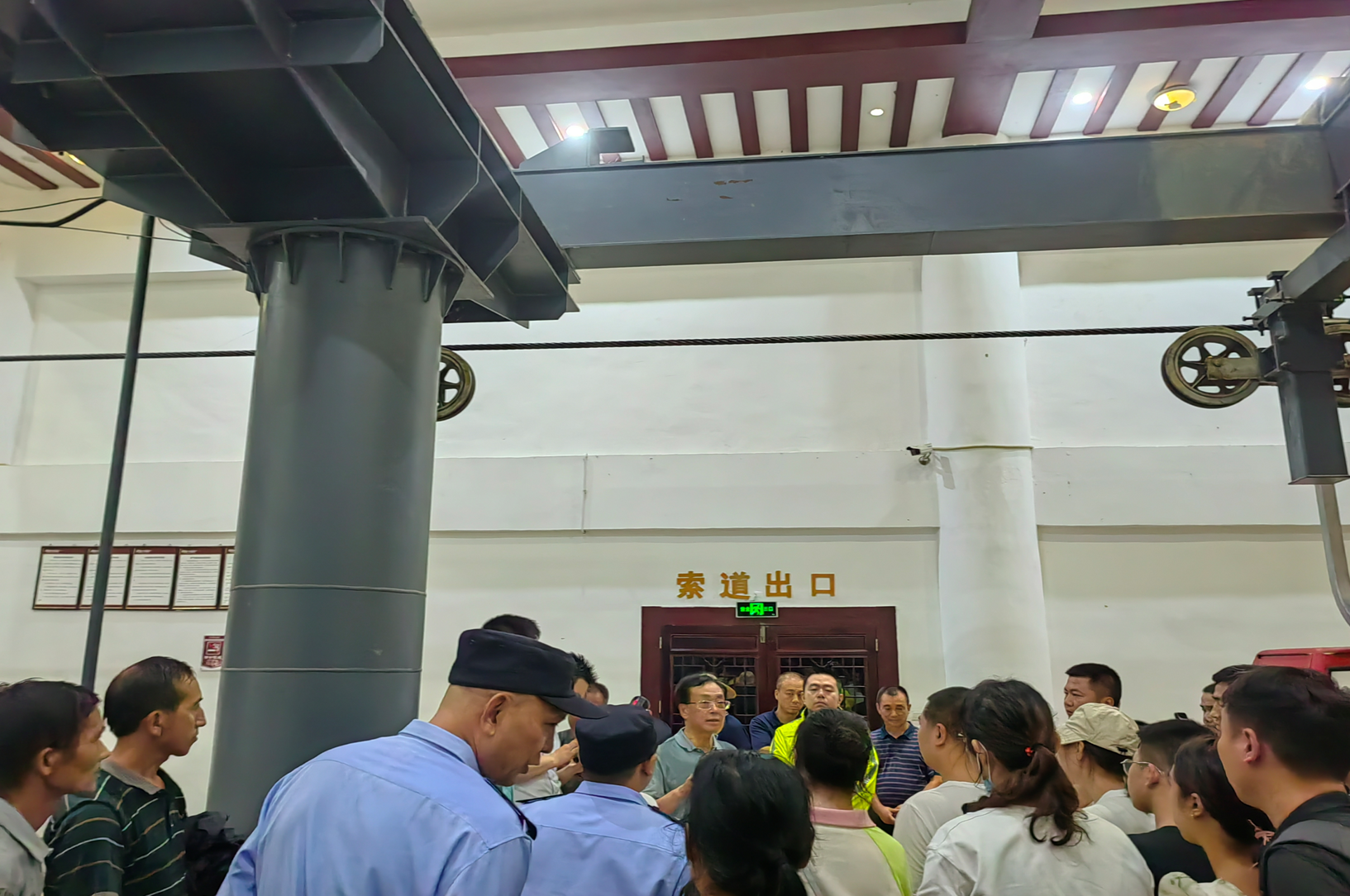 在疏导难度最大的索道下站,集团公司党委书记、董事长周德宏亲临一线统筹指挥,与滞留游客面对面耐心沟通,积极做好解释安抚工作,同时协调、组织各方应急力量,会同应急、公安、消防、文旅、江北旅游区管委会、白涛街道、大木乡和武陵山乡等单位,一同安抚游客,有序撤离,全力保障每一名游客的安全。