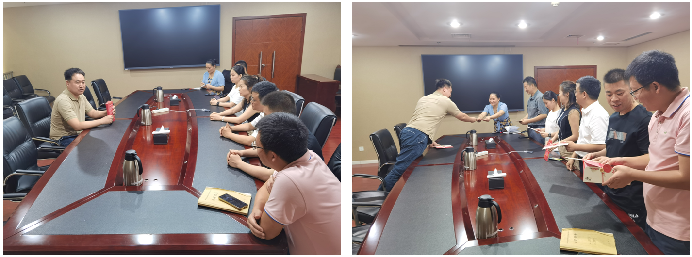 ▲图为集团公司纪委书记佟澍向关键岗位人员集中发放助廉家书