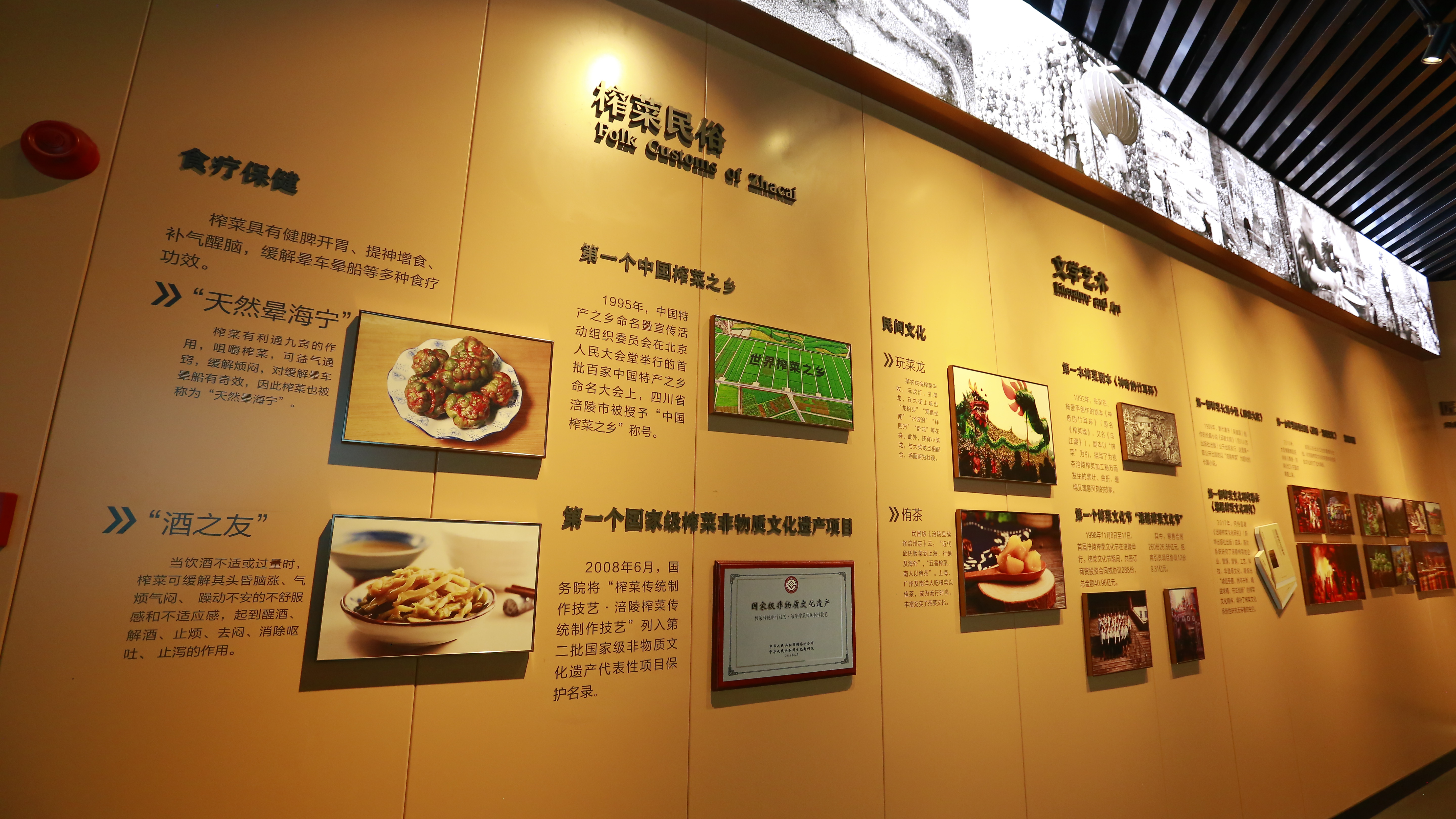 涪陵榨菜历史记忆馆占地面积15000平方米,规划总建筑面积2300平方米,通过作坊布展、环境改造、数字复原等措施,打造一个集榨菜文化展示区、榨菜文化体验区、配套利用服务区、公共广场休息区、田园菜地劳作区等多功能区域于一体的历史文化群落。