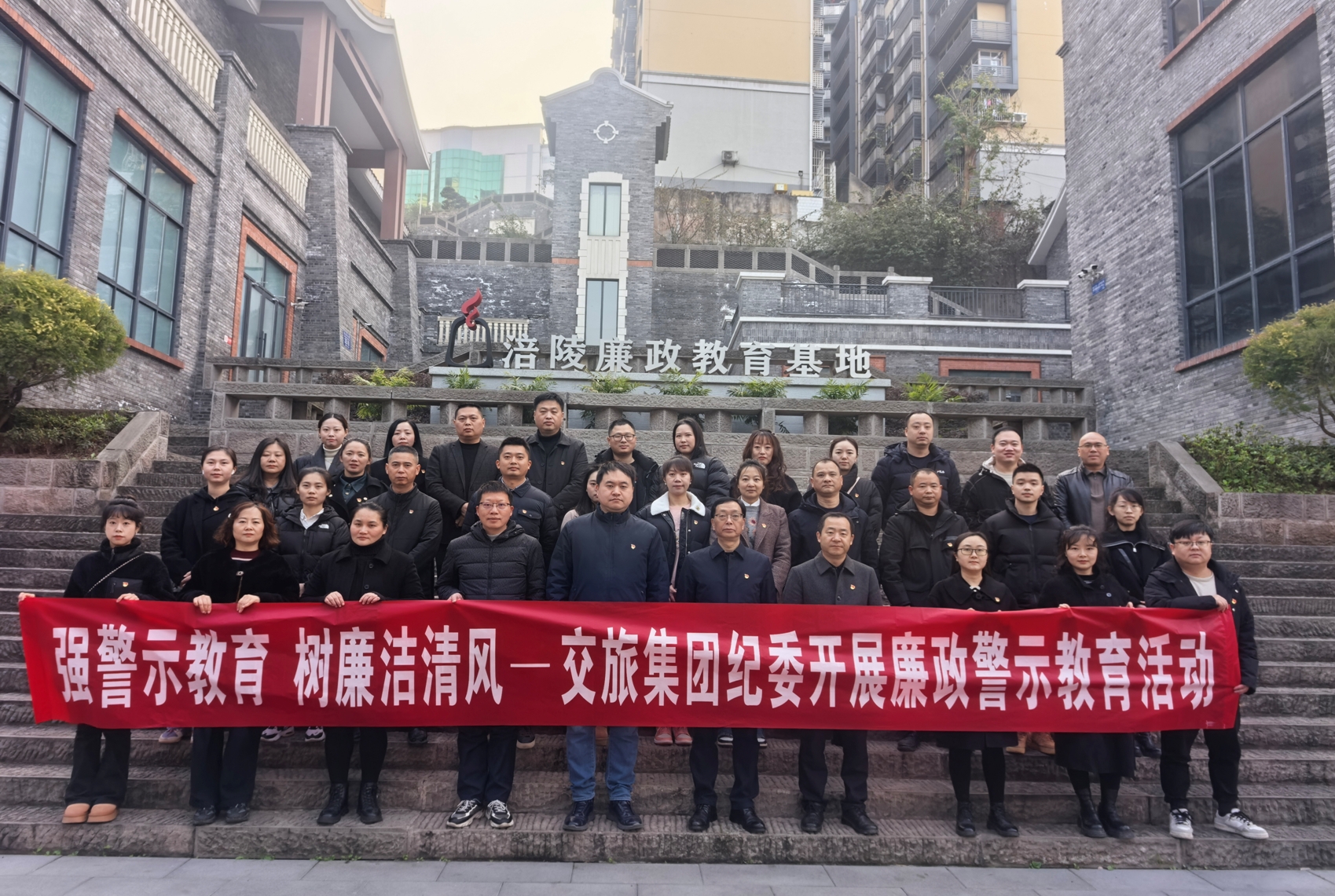 为纵深推进集团公司党风廉政建设和反腐败斗争,将党纪学习教育成果转化为奋进力量,进一步增强党员干部职工廉洁自律意识,充分发挥廉洁文化浸润人心、涵养清风作用。2月26日,交旅集团纪委组织集团领导班子成员、各部门关键岗位人员共计30余人,前往涪陵廉政教育基地开展警示教育活动。